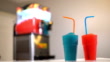 Colorful ice juice inside a container in the store swirling and turning around on the container machine