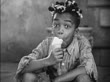 B/W 1931 close up Farina from Our Gang sitting outdoors eating ice cream cone / feature - stock video