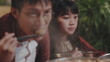 Close up father daughter enjoying Chinese new year family reunion dinner hotpot dish at home - 4K stock video