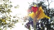 Close-up low view view. Beautiful red-yellow canna flowers are being blown. - 4K stock video