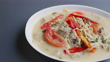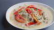 Close-up of a bowl of Thai tom kha kai coconut soup - 4K stock video
