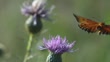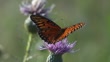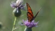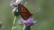 Close up of a Fritillary Butterfly Flying from a Thistle Flower - 4K stock video