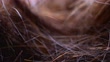 Close-up of hair. Very close-up on the tufts of hair. Macro footage of dark hair. Backwards dolly shot. Version 2 - 4K stock video