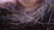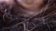 Close-up of clumps of hair. The camera passes between the strands of hair. Visible hair structure. Cut hair.