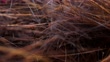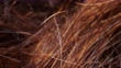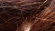 Close-up of clumps of hair. The camera passes between the strands of hair. Visible hair structure. Cut hair.