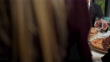 Close-up of a table in a restaurant where a group of business people are sitting and eating different food