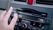 Close up of man's hand inserting and Ejecting compact disc into car stereo.