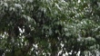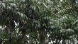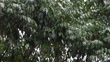 Close-up of rain falling on lush tropical leaves as water splashes and drips off in a heavy storm - 4K stock video