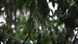 Close-up of rain falling on lush tropical leaves as water splashes and drips off in a heavy storm - 4K stock video