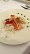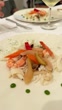 Close up of Seafood salad with shrimps, mussels, and vegetables.