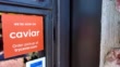 Close-up of sign for delivery service Caviar on a restaurant window, following the company's announced acquisition by rival Doordash, Walnut Creek, California, July, 2019.