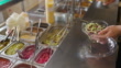 Close up of unrecognizable male fast food worker, making salad - 4K stock video