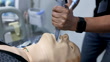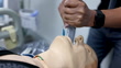 Close up of unrecognizable teacher intubating a dummy at a teaching hospital - Education and healthcare concepts