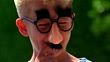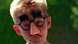 SHAKY close up PORTRAIT blonde boy wearing joke glasses + making faces outdoors / Florida - HD stock video