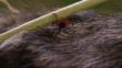 Close-up shot of a deer tick climbing from a plant stem to a furry animal - HD stock video
