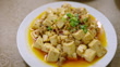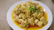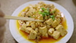 A close up shot of a stir fried tofu (Mapo tofu) being picked up of the plate - 4K stock video