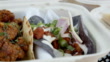 Close-Up Shot of Delicious Gourmet Unique Fun Street Tacos from the To Go Take Out Menu of a Fast Food Truck or Local Business Taco Shop in Slow Motion
