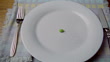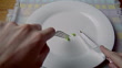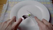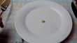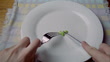 Close up single lima bean on plate being cut with a knife and fork - HD stock video