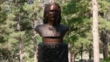 Close up time lapse sunlight dapples on Wild Bill Hickok gravesite statue and monument. - 4K stock video