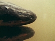 "WWWA: STRANGE CREATURES OF THE AMAZON: UNDERWATER: CU (Side) Electric Eel swimming right in murky water w/ another below. MS Electric Eel swimming (L) in murky water. Spineless, toothless fish, picivorous, fish eating, not in eel family, knifefish."