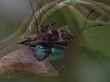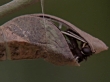 A Ulysses butterfly emerges from a chrysalis.