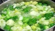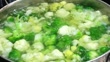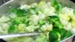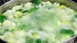 Closeup of steam coming from boiling soup with broccoli and cauliflower. - HD stock video