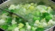 Closeup of steam coming from boiling soup with broccoli and cauliflower. - HD stock video