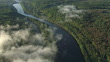 WS AERIAL Clouds moving over traffic moving on highway parallel to Delaware river at Delaware Water Gap in forests / Pennsylvania, United States - HD stock video