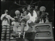 Clown Emmett Kelly / Elephant performers / Jimmy Durante performing from audience / Clowns on barber shop set / Gypsy Rose Lee on float