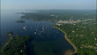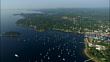 AERIAL, Coastline and boats in harbor, Camden, Maine, USA - HD stock video