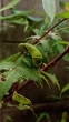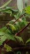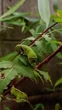 Close-up shot of a caterpillar eating Japanese pepper tree leaves.