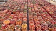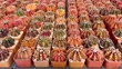 Colorful Gymnocalycium variegated in pots tray. - 4K stock video