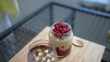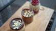 Colorful Homemade Overnight Oats In Jars Neatly Displayed On Wooden Surface - 4K stock video