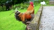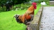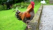 A beautiful and brightly colored rooster crows big and loud for the farm to hear. Video taken July 11, 2024 in Drumnadrochit near Inverness Scotland, United Kingdom.