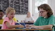 Colouring Together in an Elementary Workbook - 4K stock video