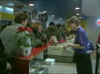 People eating in fast food restaurant serving Kentucky Fried Chicken, Pizza Hut etc PAN L-R