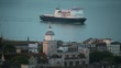 PORTSMOUTH, ENGLAND – AUGUST 11: (AUDIO OMITTED) Commodore Clipper, a RoRo passenger and car ferry run by Condor Lines, passes near Portsmouth Cathedral at dawn on August 11, 2023 in Portsmouth, England. A member of the International PETS Scheme, it allows documented animals to travel between the UK, the channel Islands and France for free. (Footage by Ron Morgans/Getty Images)