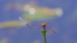 A Common Darter Dragonfly sat on a reed is approached by a Damselfly in slow motion. - 4K stock video