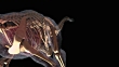 A computer-generated anatomical model of a running Deinonychus features its tail and skeletal system.