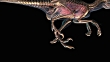 A computer-generated animation reveals the skeletal system of a running Deinonychus below its skin.