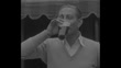 Guy Lombardo putts on musical miniature golf course and drinks a beverage