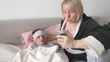 Concerned mother monitors sick child while making phone call - 4K stock video