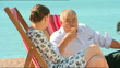 Brendan Barber (outgoing TUC General Secretary) sitting on beach with Frances O’Grady (new TUC General Secretary), with ice creams