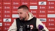 LIVERPOOL, ENGLAND - JANUARY 12: Conor Hourihane, manager of Barnsley, speaks about the fans after their FA cup match against Liverpool during a press conference at Anfield on January 12, 2026 in Liverpool, England. (Footage by Niche Sport Media via Getty Images)