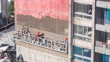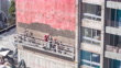 Timelapse of workers laying brick veneer in a building under construction