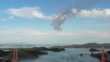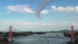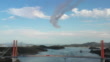 Contrail of Black Eagles aircraft over Jindodaegyo Bridge / Jindo-gun, Jeollanam-do, South Korea - 4K stock video