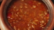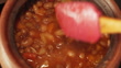 Cooking beans in a brown culinary clay pot - 4K stock video