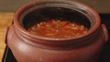 Cooking beans in a brown culinary clay pot - 4K stock video