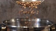 Cooking green lentils. Vegetarian food. Brazilian menu. Pour cereal into a bowl. Soybean