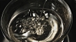 MCU SLO MO of cooking oil being poured into transparent pyrex glass bowl.